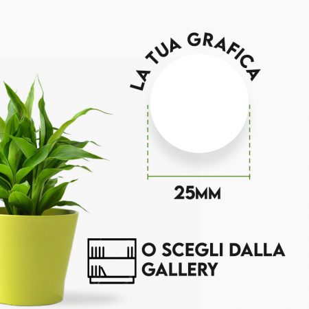 Pensato principalmente per un uso meno professionale ma più pratico, in quanto grazie al potente adesivo 3M potrai attaccarlo ovunque, dal retro del tuo Smartphone al portafogli o al PC o a qualsiasi altro oggetto che desideri.Il modello FLAT, ha dimensioni di 25mm (diametro) e 1.5mm (spessore). Stampato con tecnologia UV Led HD con grafica scelta dalla nostra libreria o da tuo file senza QRCode.